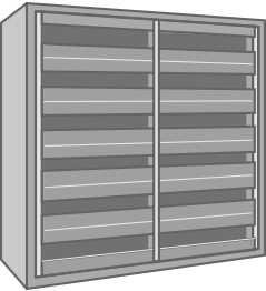 - 処理風量を多くするために、ABS製並行多孔板で作った容器に粒状活性炭を充填したユニットを12個使用し、ジグザグに木枠内に組み込んだものでW型とも呼ばれています。
